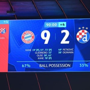 体坛周报全媒体报道 惨无仁道!拜仁9比2狂胜萨格勒布迪纳摩,成为第一支在欧冠联赛单场打入9球的球队,同时也是拜仁在欧冠...